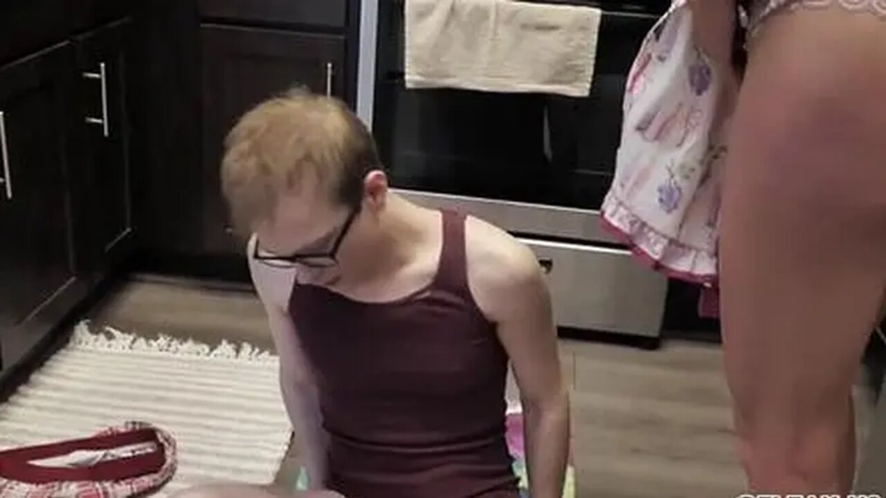 Sofie Marie, the strict stepmother, is on her knees getting dicked down by a huge cock. She takes every inch of it in her throat, gagging and coughing as she pleases him. He eventually cums all over her pretty face.